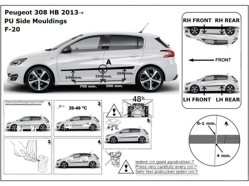Ochranné lišty bočných dverí, Peugeot 308 II, 2013-2019