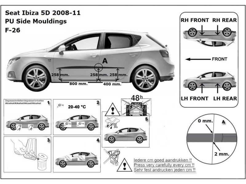 Ochranné lišty bočných dverí, Seat Ibiza IV, 2008-2011, Hatchback