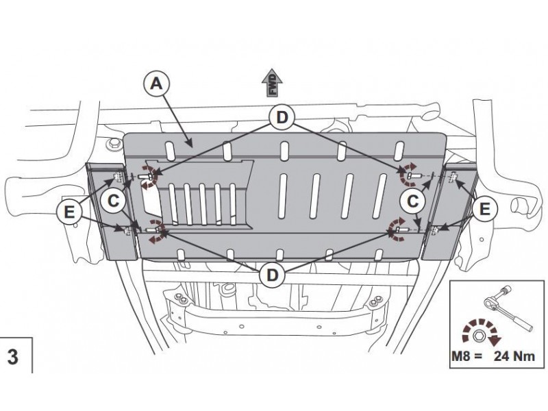 Kryty se vyrábějí přesně na míru konkrétnímu vozu, takže je lze jednoduše namontovat na originální montážní otvory. Doporučujeme však návštěvu servisu. Spojovací materiál je součástí balení. Ocelové kryty bývají originálním příslušenstvím vozidel.