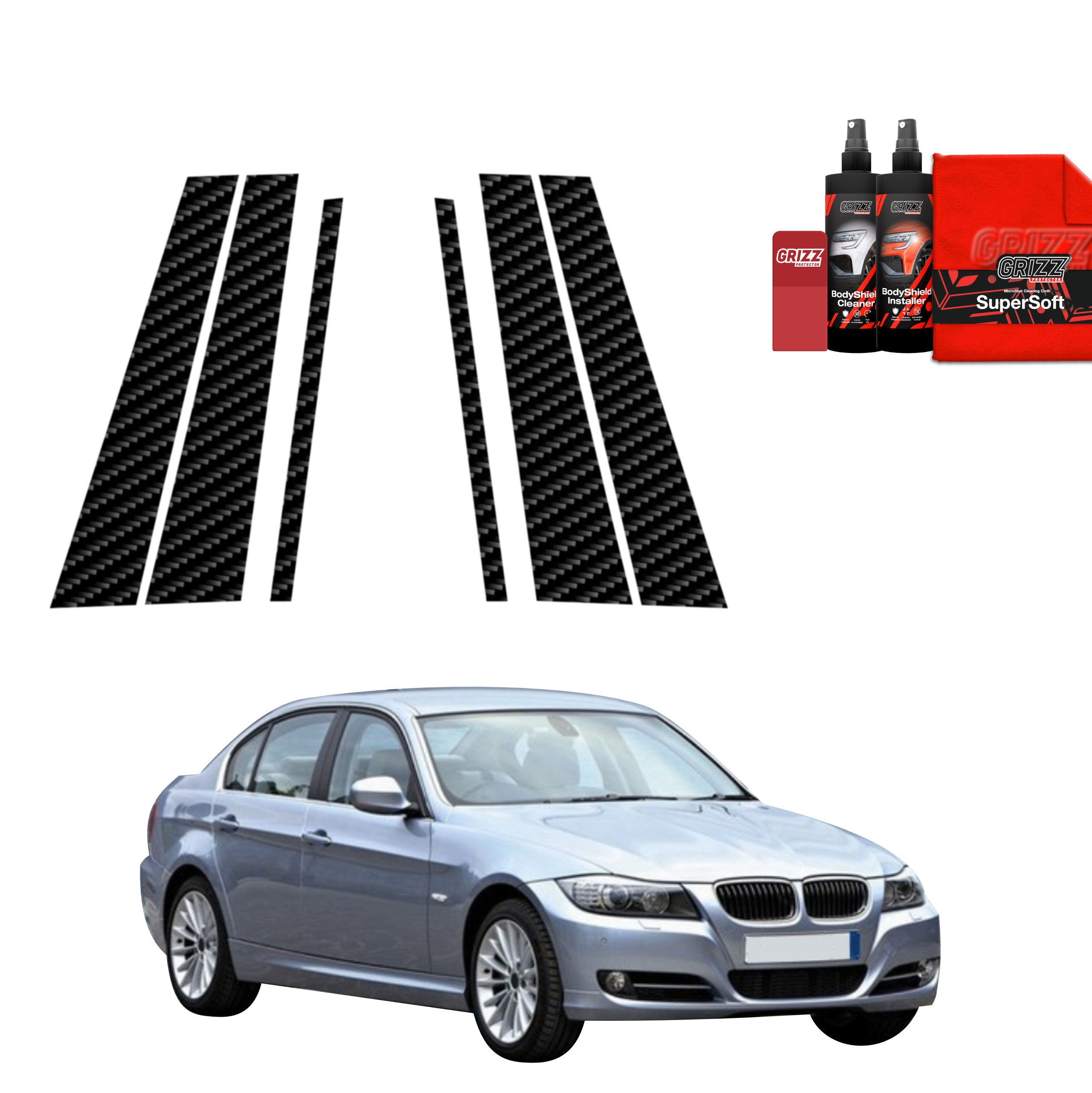Carbonová fólia na stĺpiky dverí, BMW 3, E90, 2005-2008, Sedan