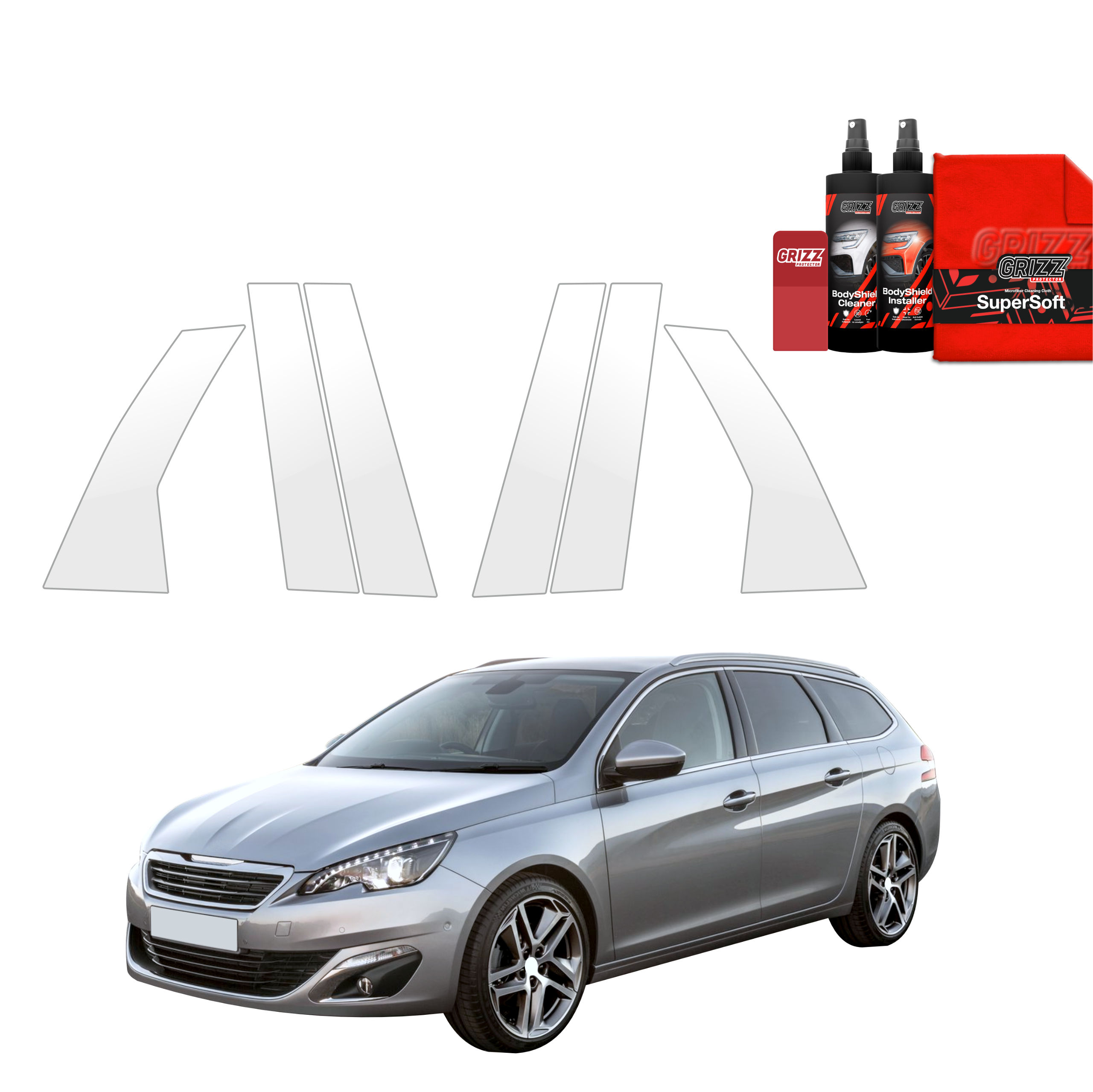 Ochranné fólie na stĺpiky, Peugeot 308 II, 2013-2021, Combi